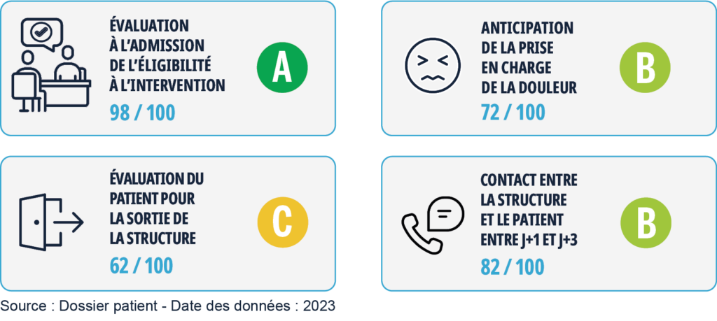 Des indicateurs dans différents domaines sont définis pour évaluer le niveau de qualité et de sécurité des soins que nous délivrons. Les résultats sont diffusés annuellement, notamment sur le site de la HAS.