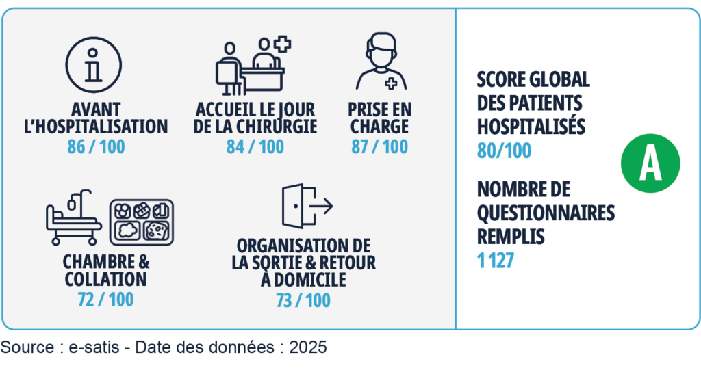 La mesure de la satisfaction et de l’expérience des patients est effectuée via des questionnaires remplis par les patients après leur séjour. Le questionnaire est adapté au type de séjour et concerne différentes étapes du parcours de soin.